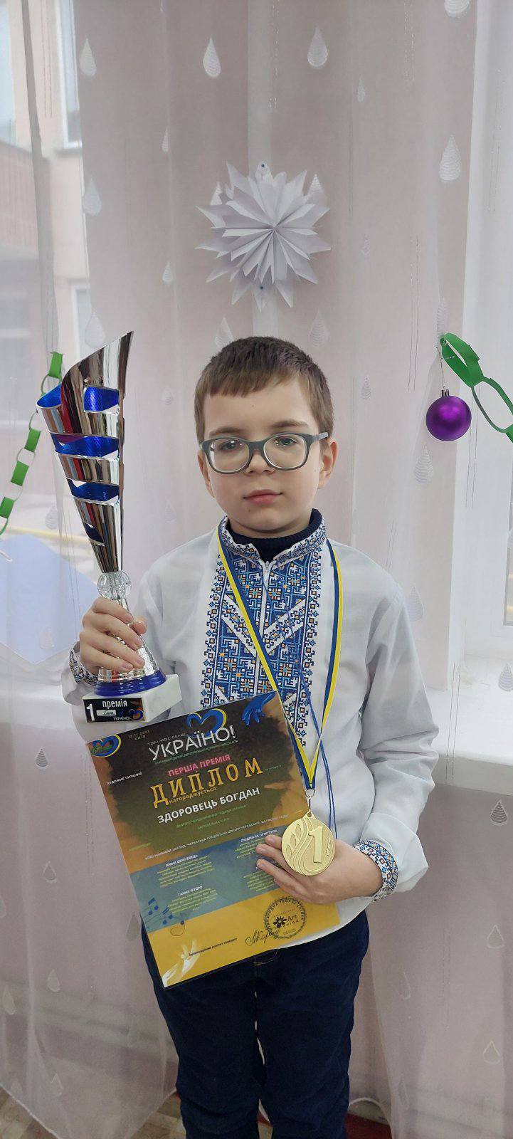 15 листопада 2025 року учень 5-А класу Богдан ЗДОРОВЕЦЬ разом із керівником Юлією ЗАГРЕБЕЛЬНОЮ взяв участь у ІІІ Міжнародному двотуровому конкурсі мистецтв “Тобі моє серце, Україно!”