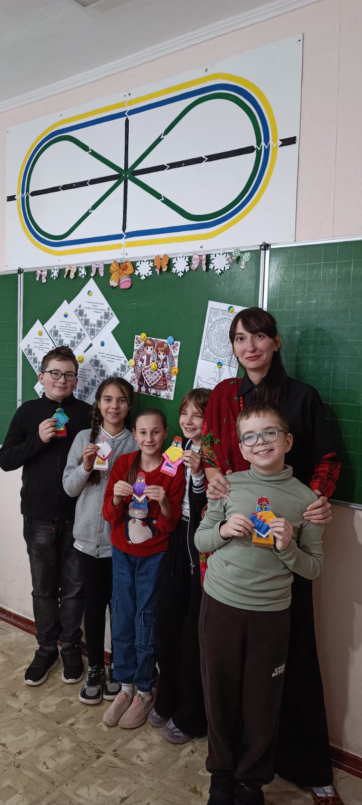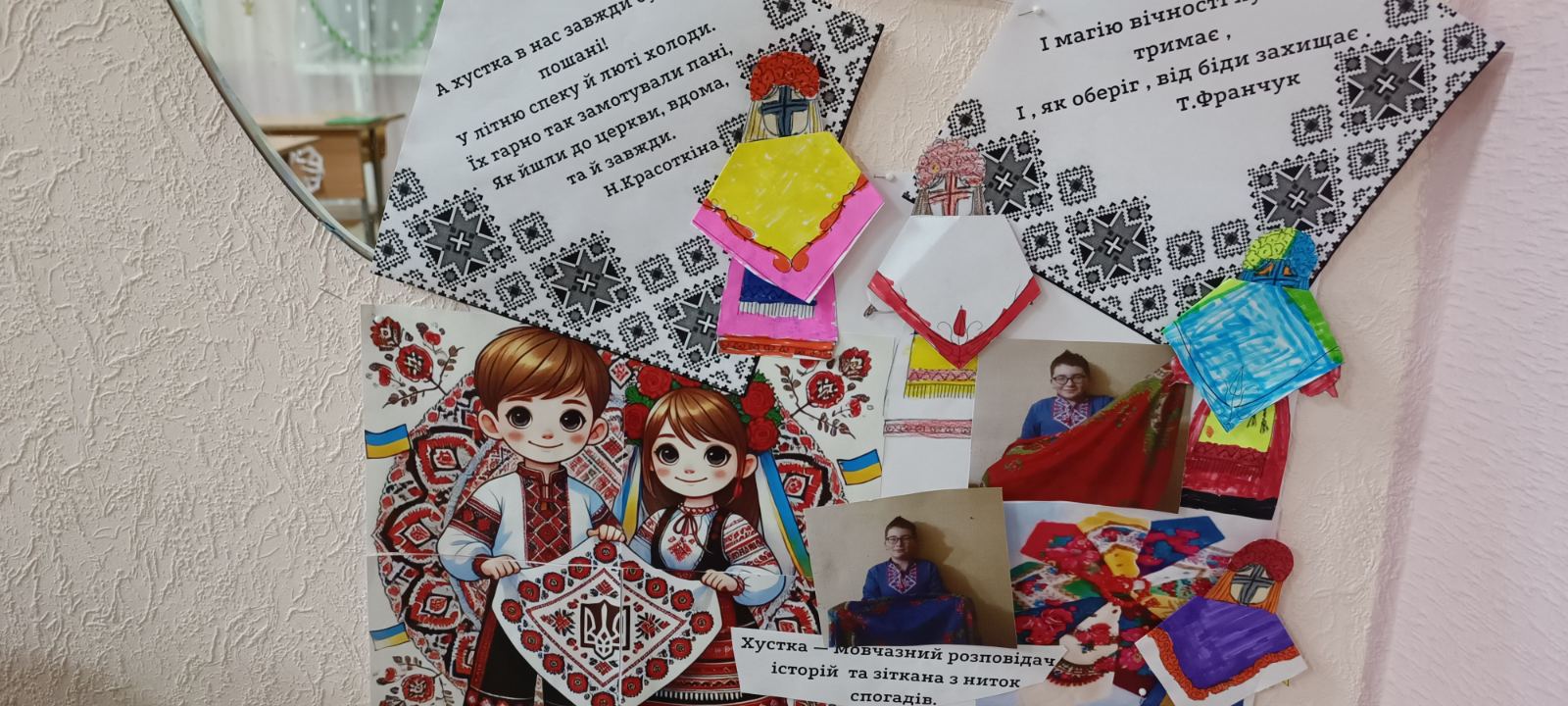 Учні -А класу разом з класним керівником ОКСАНОЮ ЗІНЧЕНКО ознайомились з обрядовою роллю української хустки в житті українського народу, виховували поважне ставлення до українських звичаїв та обрядів, патріотизм, розвивали творчі здібності та естетичний смак. І все це упродовж такого цікавого і патріотично-естетичного заняття: