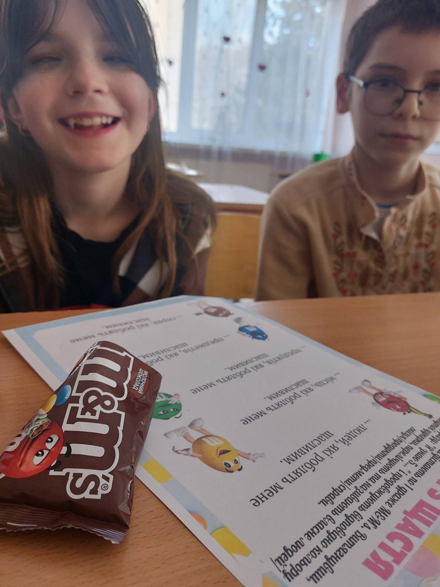 Під час інтерактивного заняття «Щастя в твоїх руках» діти мали змогу замислитися над тим, що робить їх щасливими, поділитися своїми думками та відчути підтримку один одного. Акція «Банка щастя» допомогла кожному зібрати свої маленькі радості — теплі слова, побажання та приємні спогади, які зігріватимуть серце ще довго. «Смачненька» вправа «M&M’s щастя» подарувала не лише гарний настрій, а й можливість у невимушеній атмосфері поговорити про важливе та й скоштувати смаколики. Усі бажаючі мали нагоду обрати собі «шматочок щастя»! Такі заходи допомагають формувати позитивне мислення, розвивати емоційний інтелект та створювати дружню атмосферу в учнівському колективі.