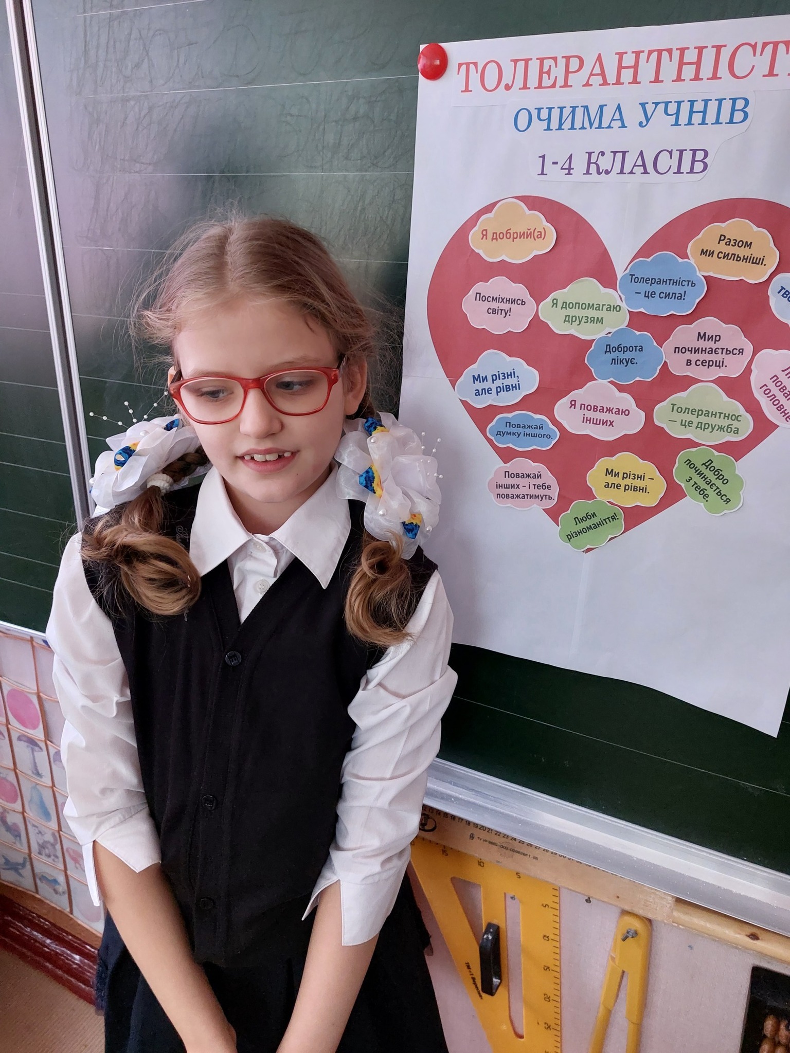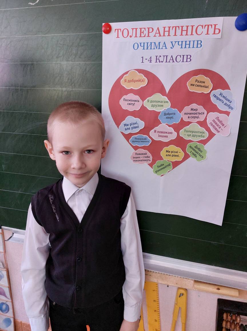 Наймолодші школярі познайомилися з поняттям толерантність, вчилися з повагою ставитися до відмінностей, переглянули та обговорили мультфільм «Іжачок» та створили плакат з великим толерантним серцем.