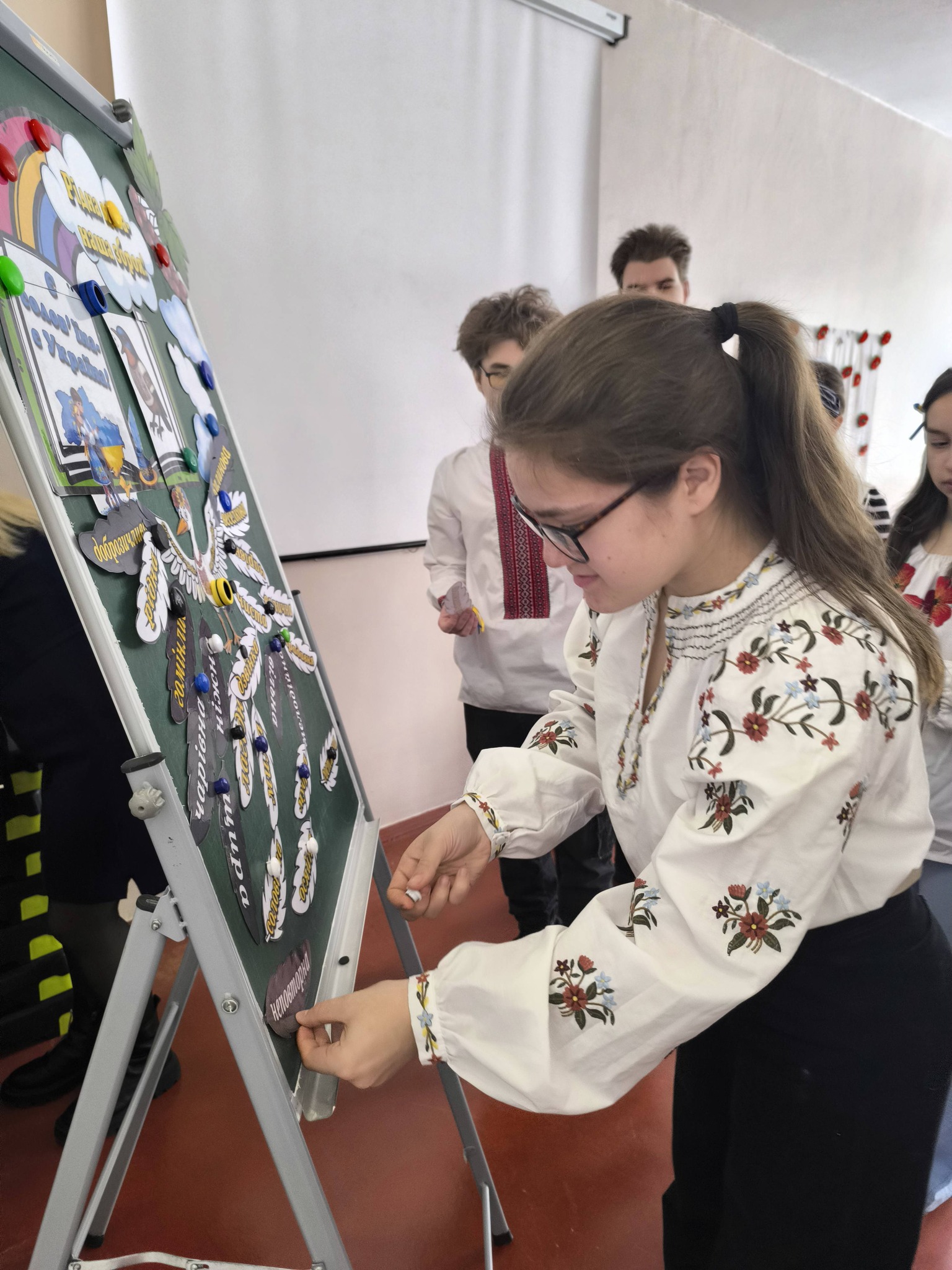 Завершився захід емоційним виконанням пісні про мову під музичний супровід вчителя мистецтва Олександра ШНАЙДЕРА та патріотичної руханки, проведеної педагогом- організатором Юлією БАЛЬВОЮ. Вчителями проведені ряд заходів: Олександром ШНАЙДЕРОМ організована виставка українських народних народних музичних інструментів; Світланою ЧУДОВОЮ проведений мовний батл «Як я знаю українську» у 10-Б класі та вікторина «Рідна мова барвінкова» у 7-А класі, де учні мали змогу перевірити свої практичні уміння та знання з рідної мови, поринути у мовне багатство , проявити повагу та шану рідній мові;