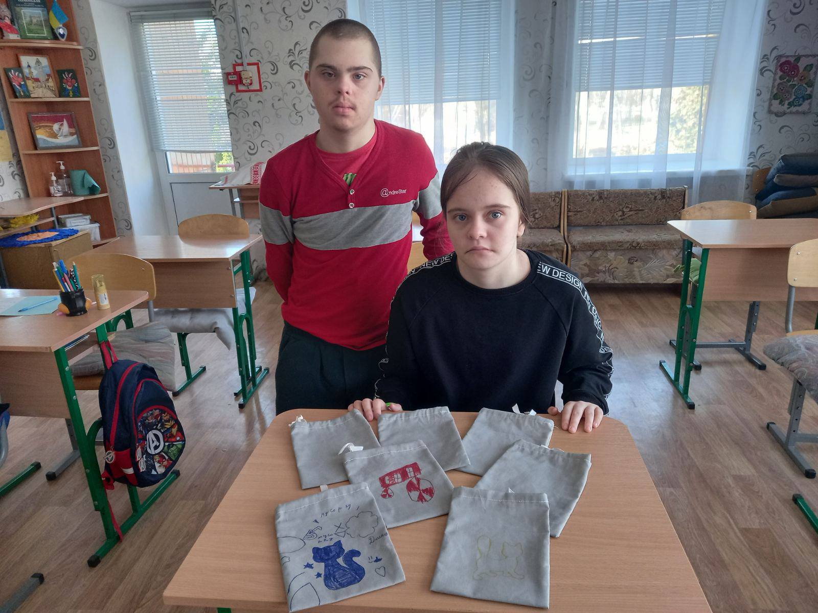 Учні 7-Б класу разом з вчителем Марією БОГОМАЗ шили екоторбинки з вживаних матеріалів.